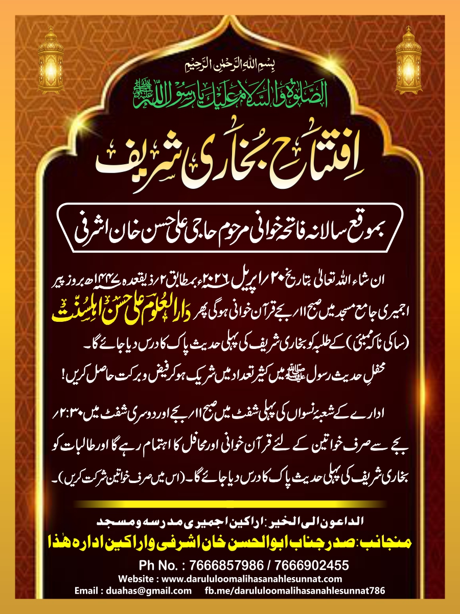 Mail us : info@www.darululoomalihasanahlesunnat.com