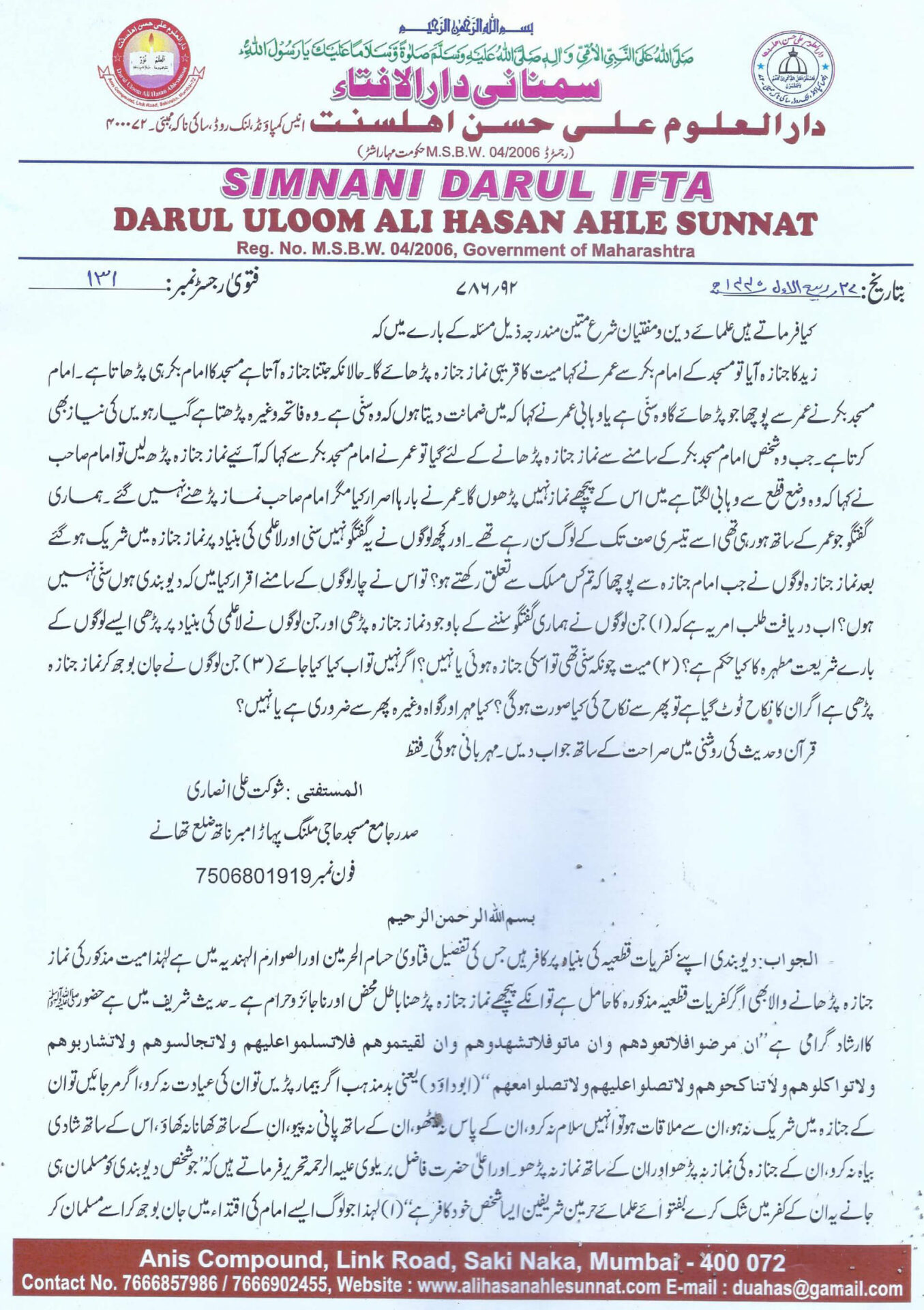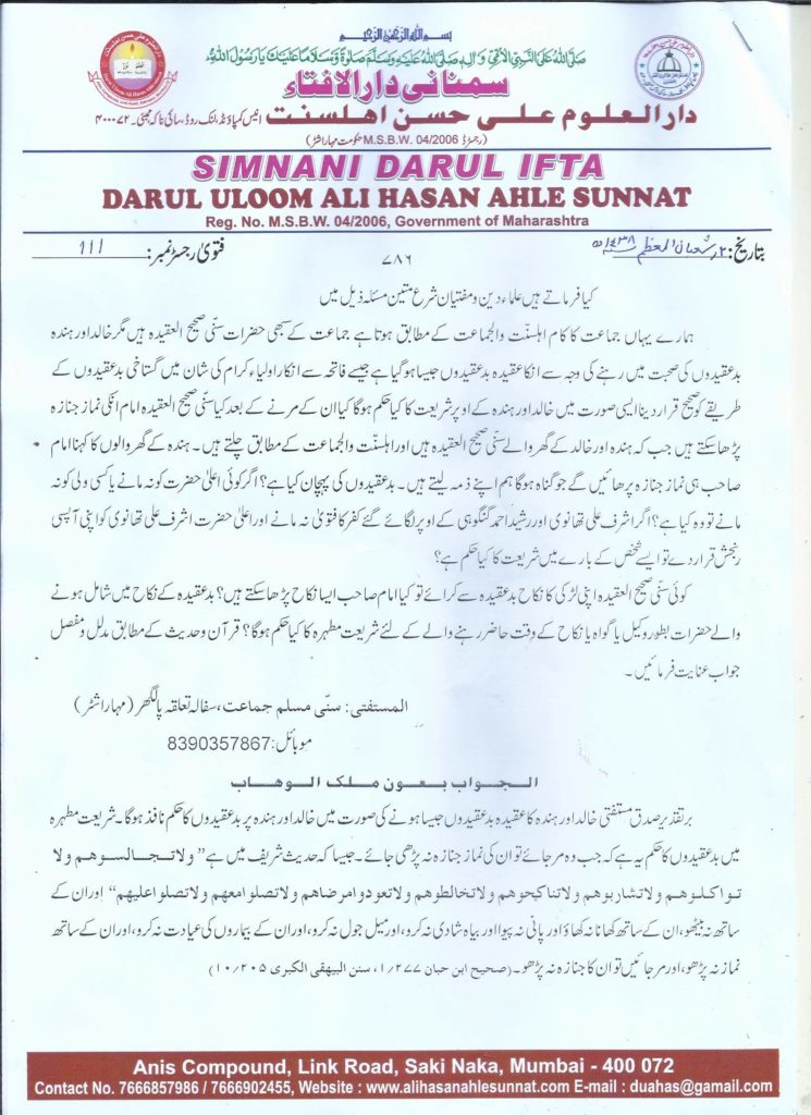 وہابی،دیوبندی امام کے پیچھے نماز جنازہ جان بوجھ کریالاعلمی میں پڑھنے کا حکم؟