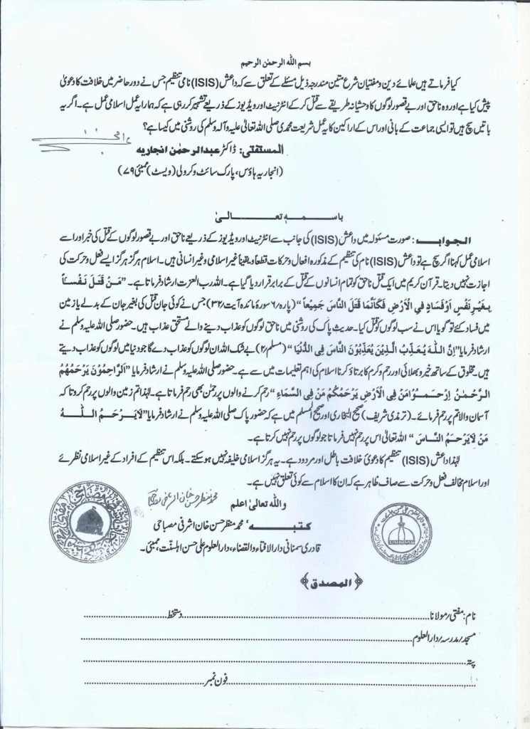 داعش(ISIS) نامی تنظیم کواسلامی خلافت کا نام دینااوراس کے طریقۂ کار کو اسلامی عمل بتانا کیساہے ؟