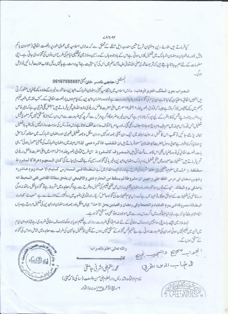 مدارس اسلامیہ میں تعطیل کلاں اوررخصت اتفاقیہ وغیرہ کی تنخواہ لینا دیناکیساہے ؟