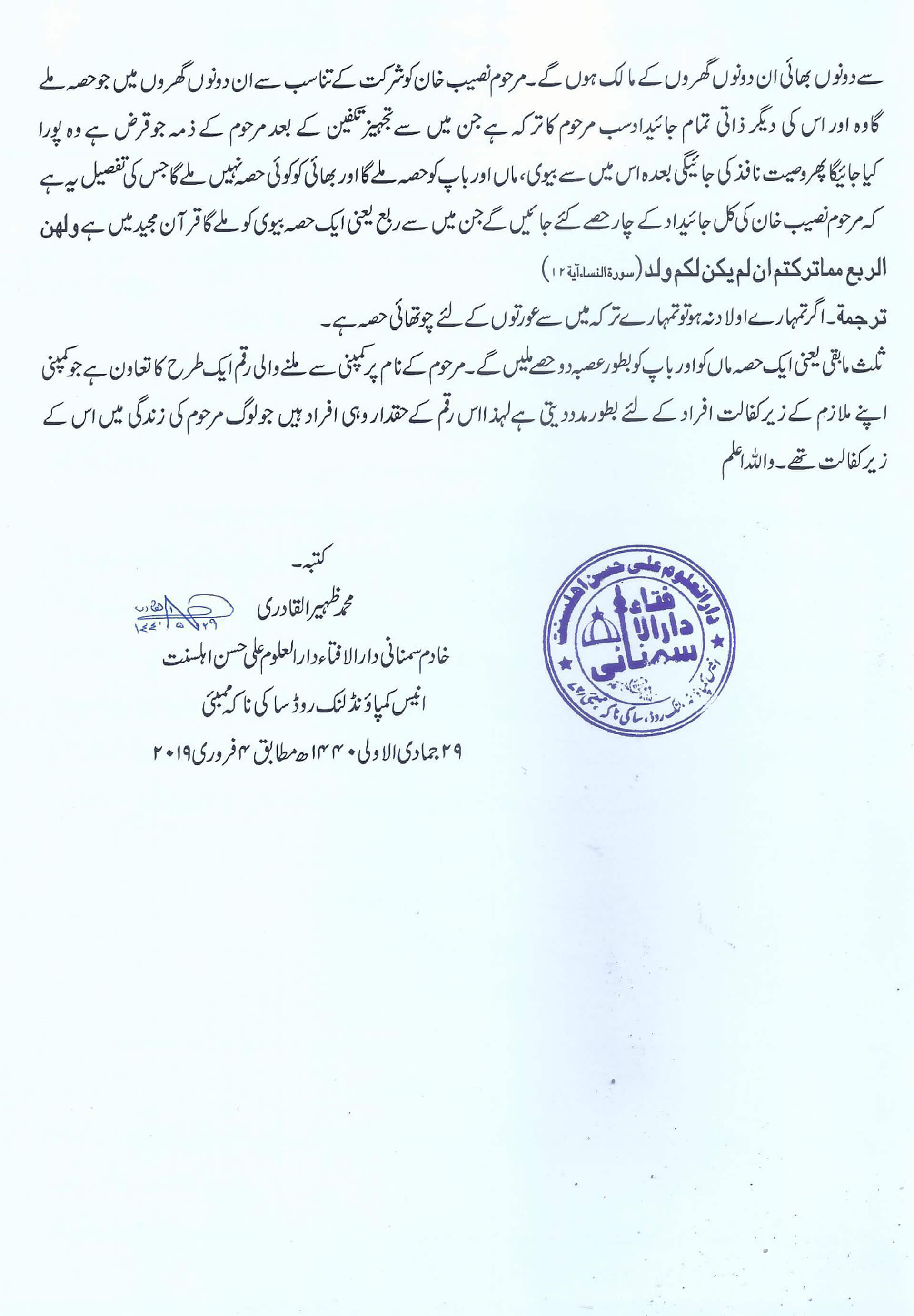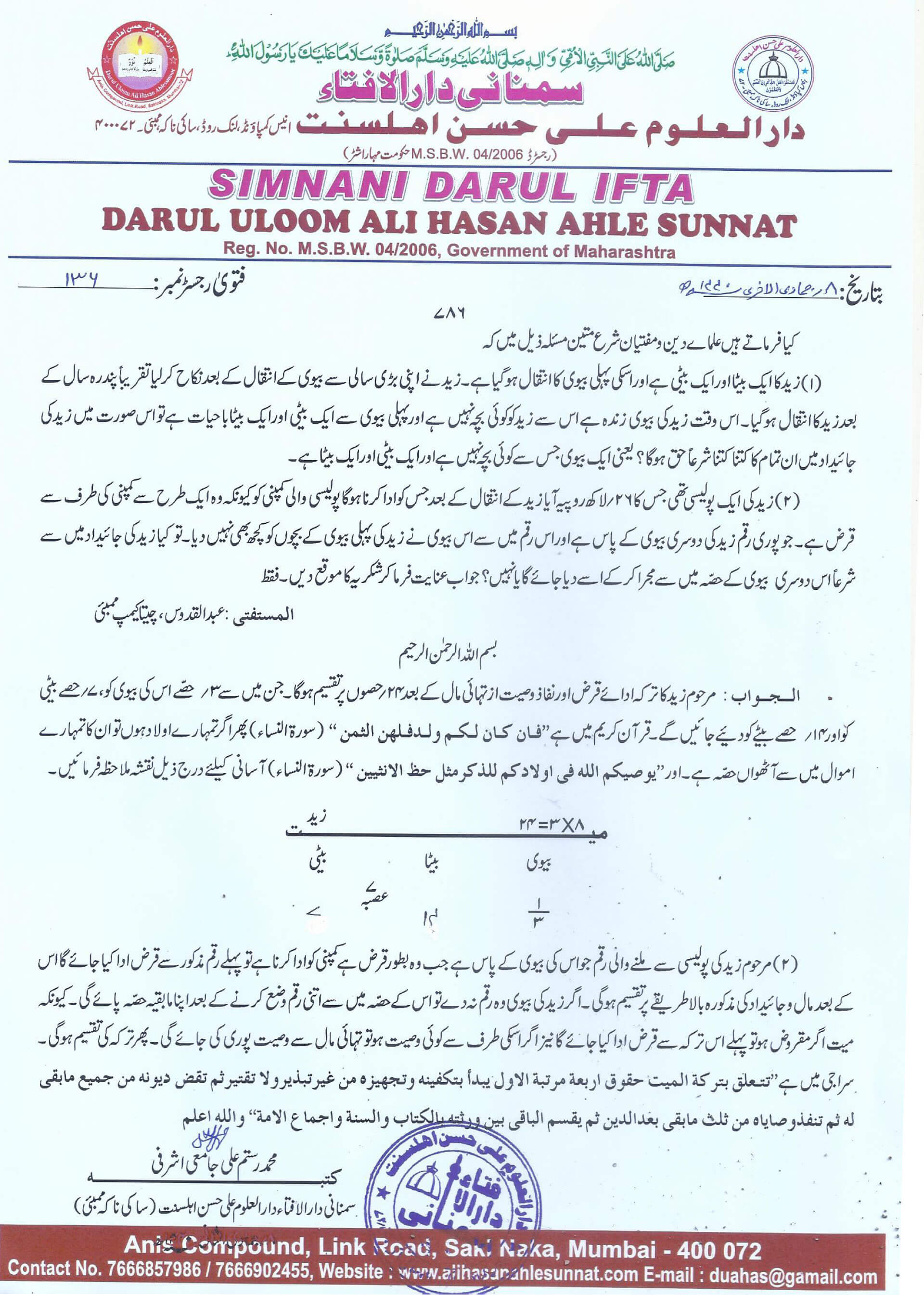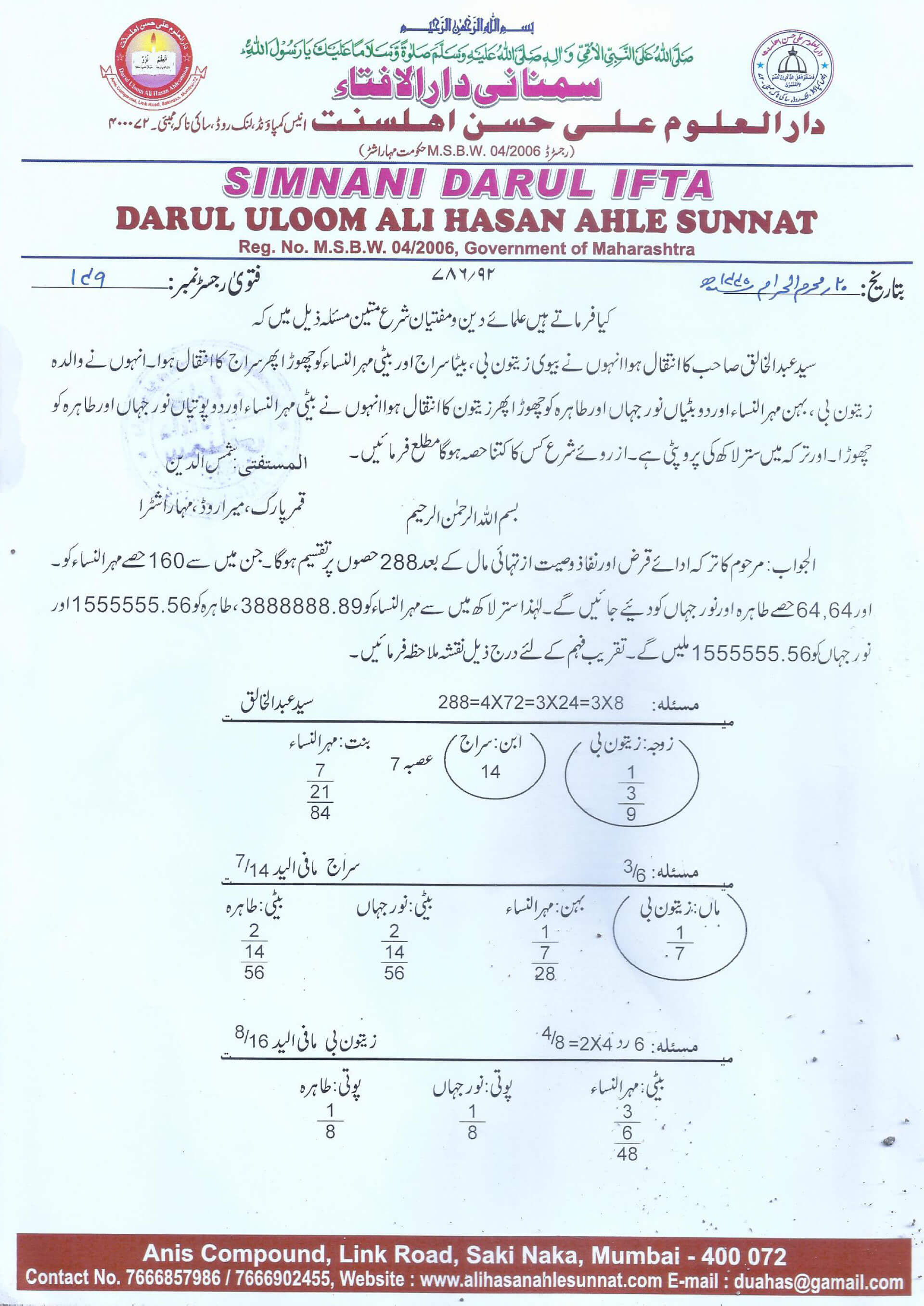 تقسیم ترکہ میں ایک صورت مناسخہ کی؟