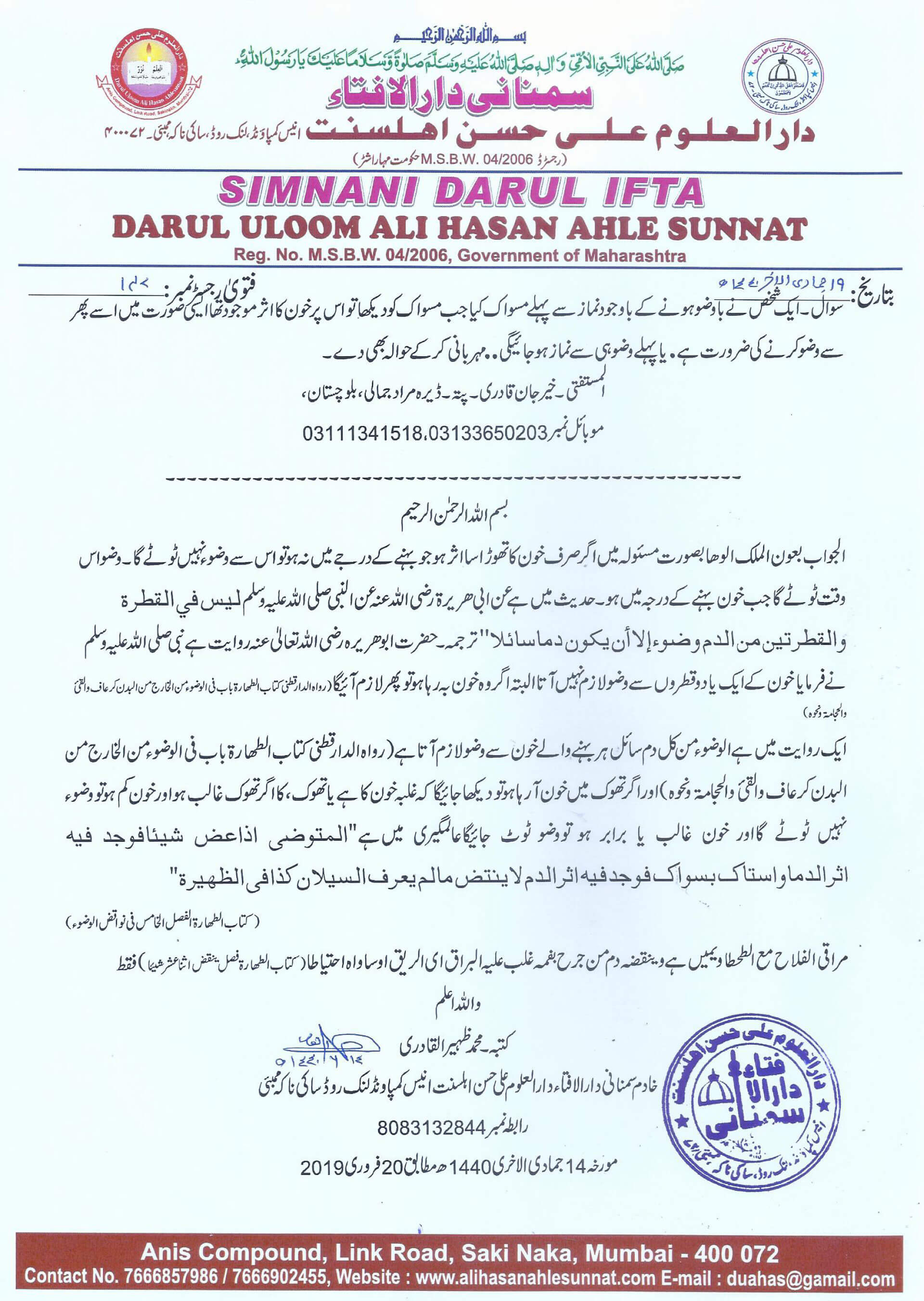 وضو کے بعد مسواک کیا جب مسواک کو دیکھا تو اس پر خون کا اثر موجود تھا ایسی صورت میں اسے پھر سے وضو کرنے کی ضرورت ہے؟