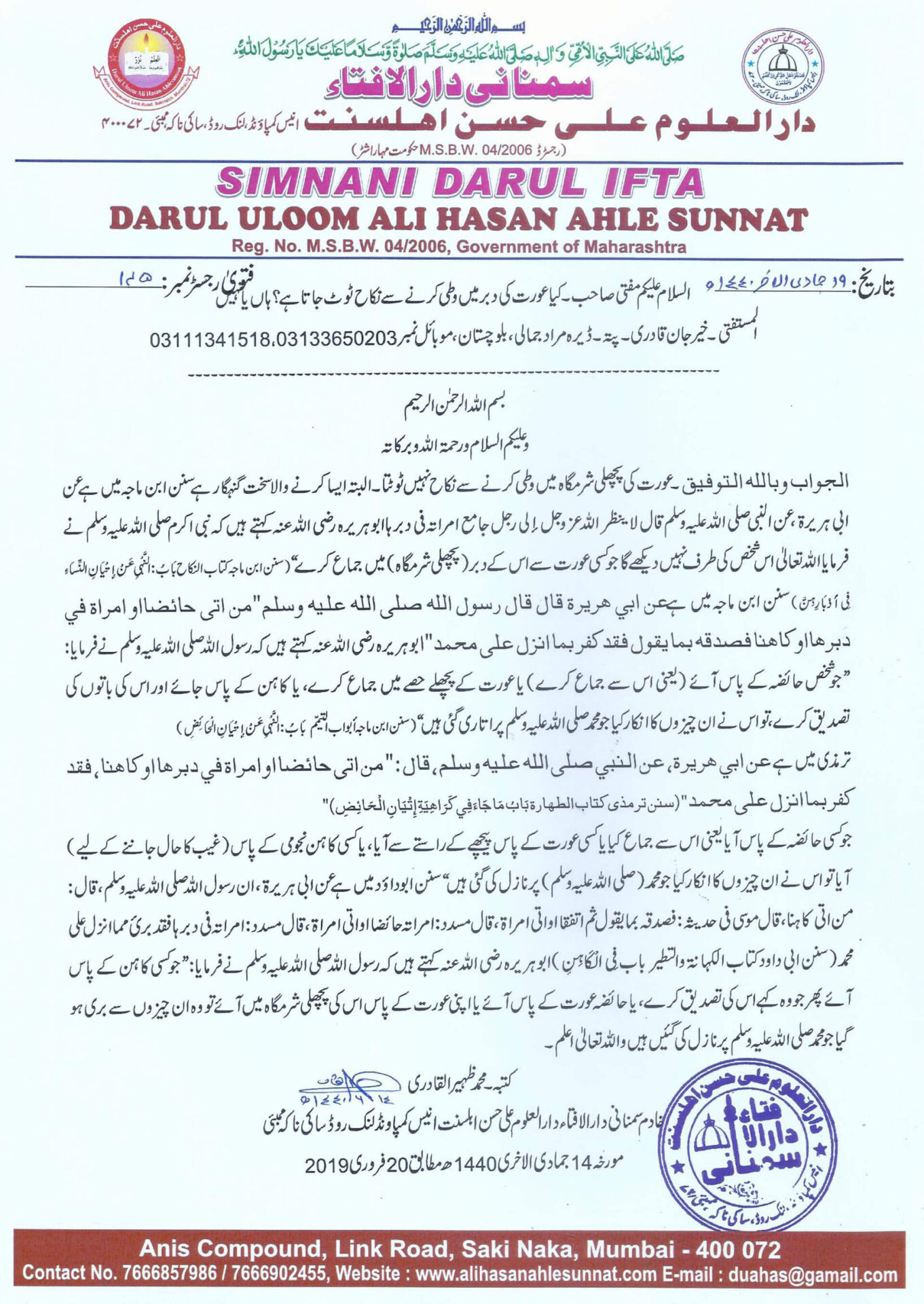 کیا عورت کی دبر میں وطی کرنے سے نکاح ٹوٹ جاتا ہے؟