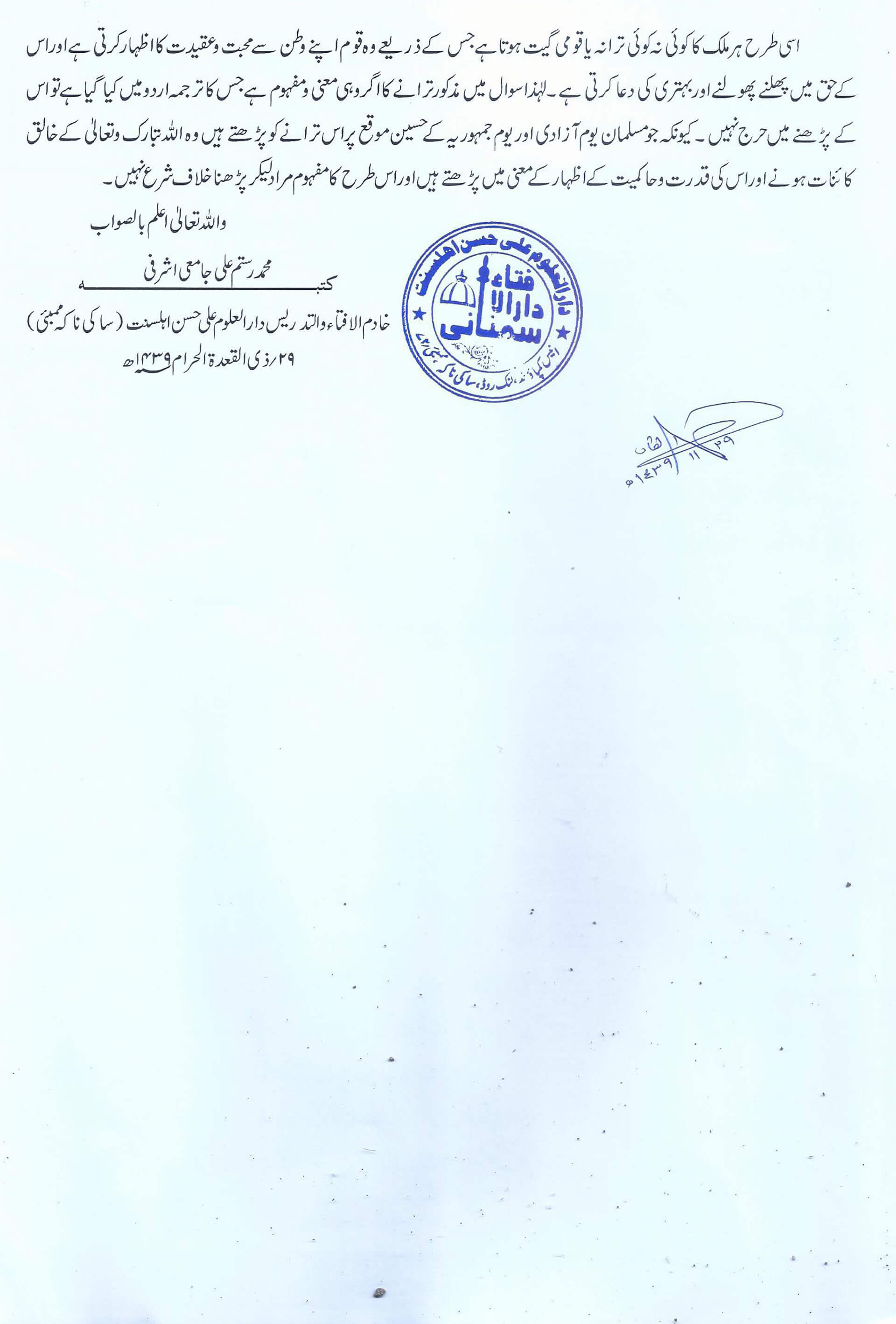یوم آزادی اورجمہوریہ کے موقع پر وطن کاپرچم لہرانا اوراسے سلامی دینا اور جن گن من ادھینایک جیہ ہے کا پڑھناکیسا ہے؟