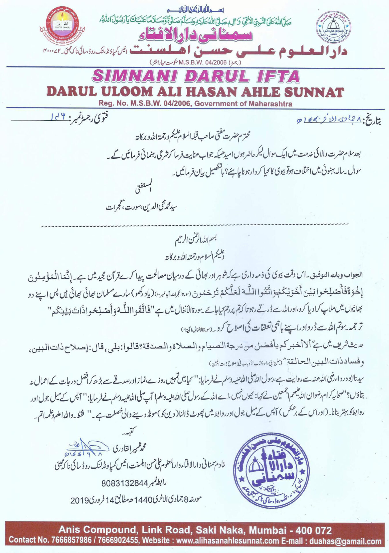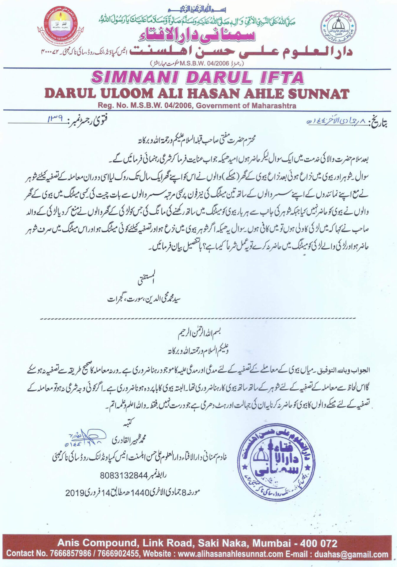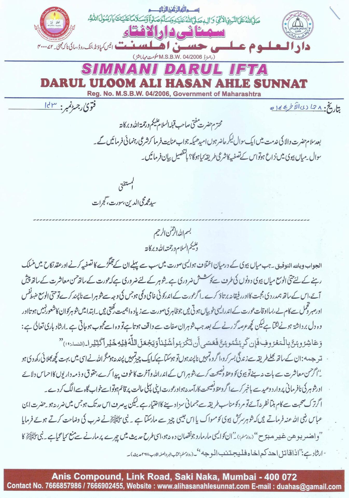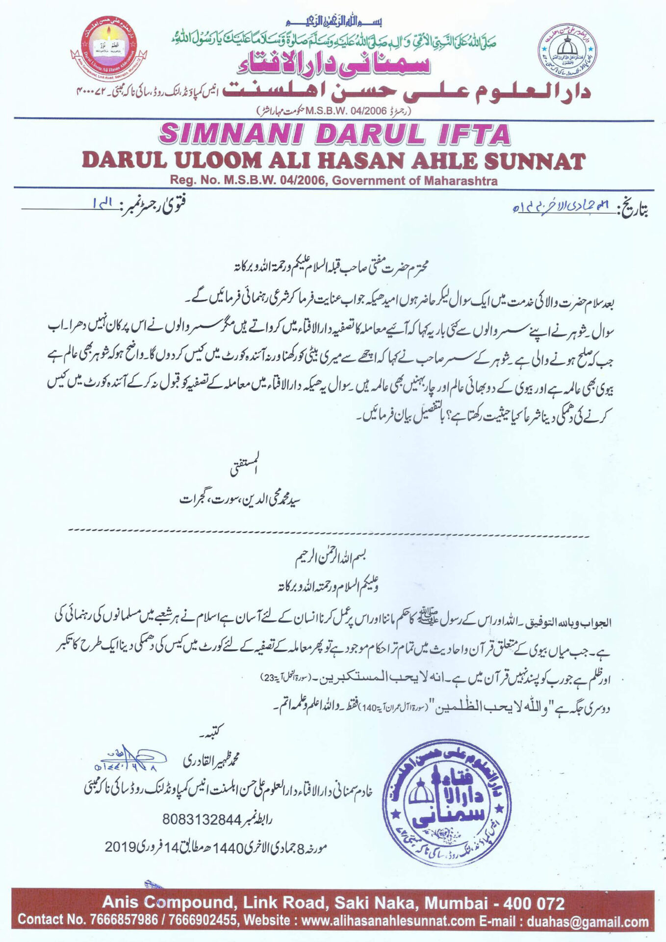 دارالافتاء میں معاملہ کے تصفیہ کو قبول نہ کر کے آئندہ کورٹ میں کیس کرنے کی دھمکی دینا شرعاً کیا حیثیت رکھتا ہے؟