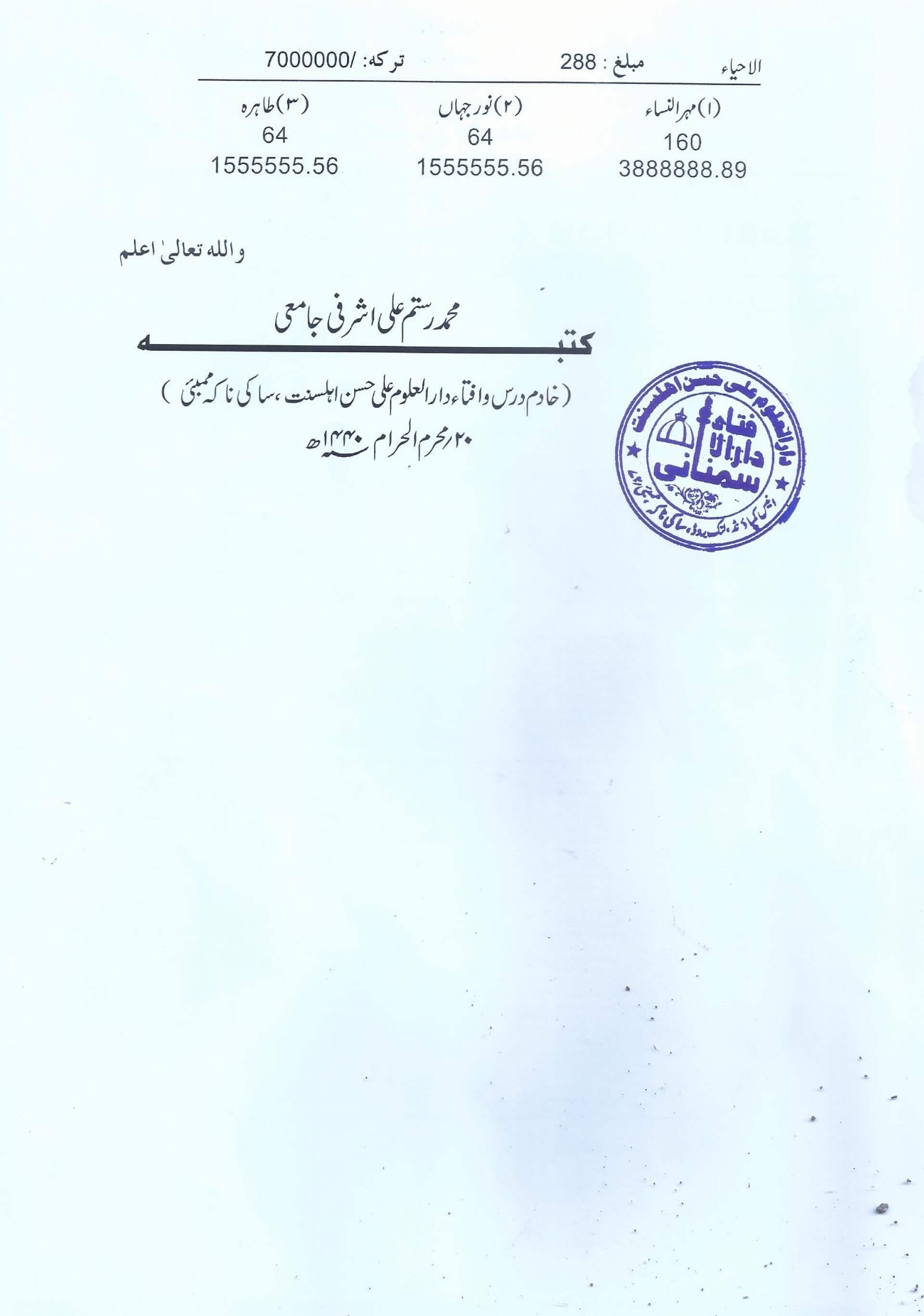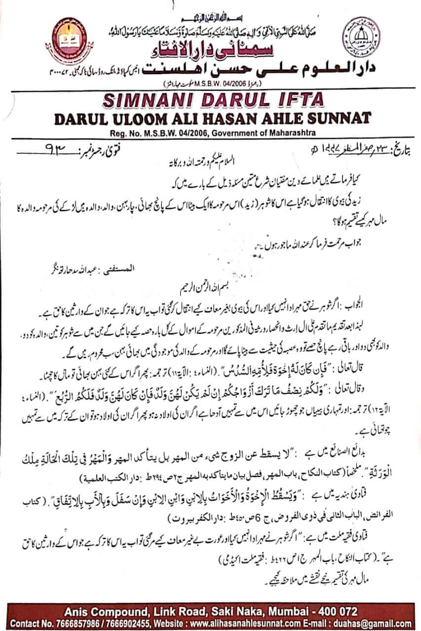 والدہ کا مال مہر کیسے تقسیم ہوگا؟