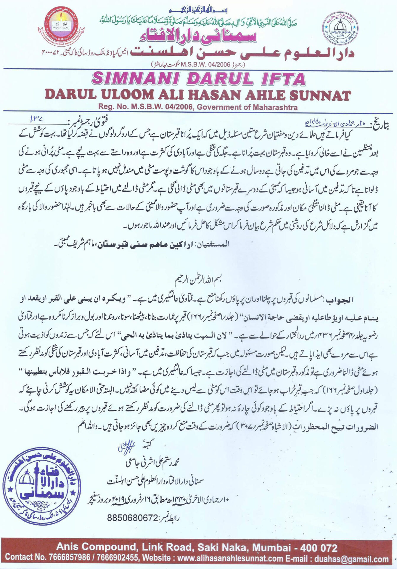 قبرستان کی حفاظت کے لئے مٹی ڈالتے وقت قبروں پر پاؤں پڑنے کاحکم ؟