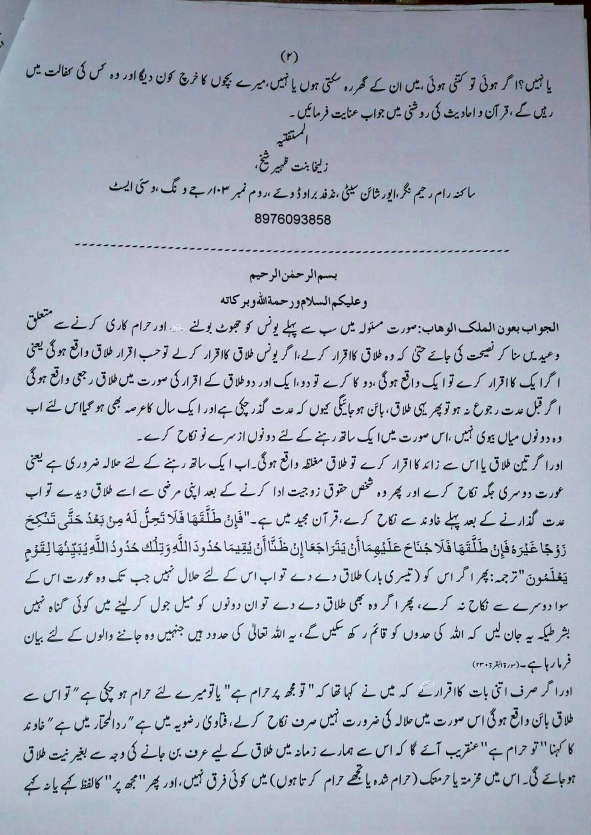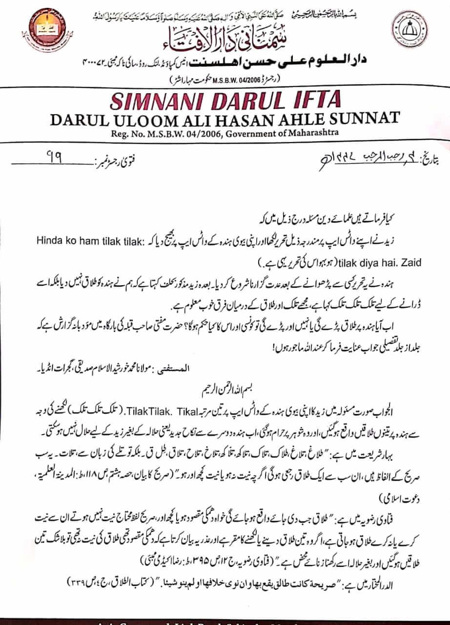 اپنی بیوی کے واٹس ایپ پر تلک تلک تلک Tilak. Tilak. Tilak. لکھنے کے بعد کہنا کہ ہم کو طلاق ،اور تلک میں فرق معلوم ہے تو کیا طلاق ہوگی یا نہیں ؟