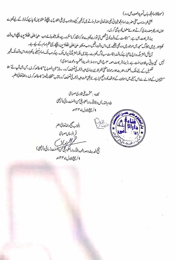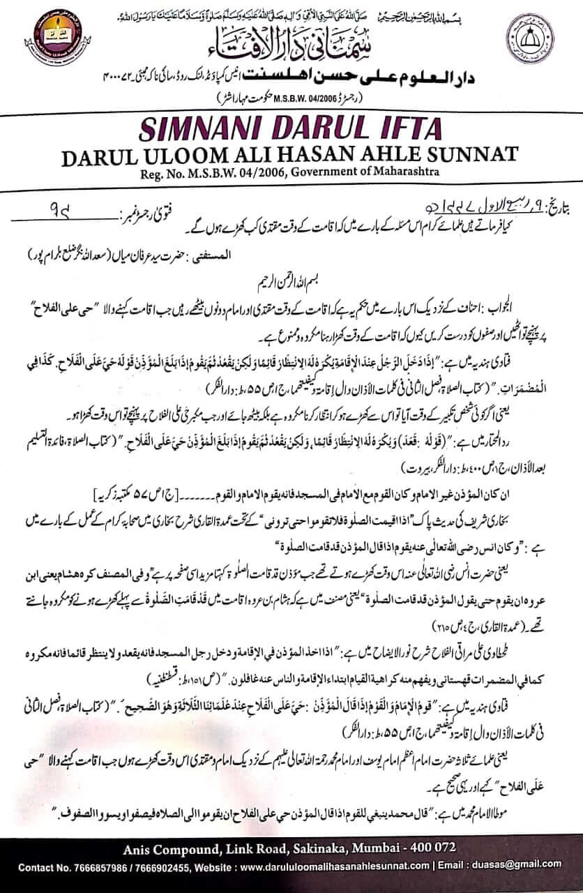 وقت اقامت مقتدی کب کھڑے ہوں؟