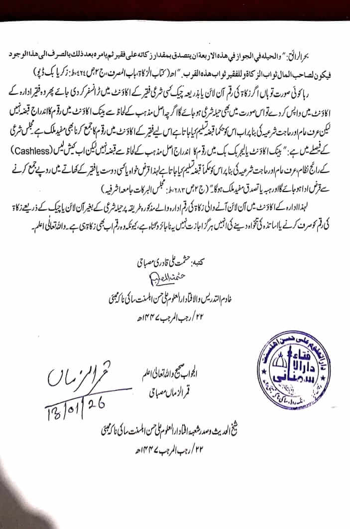 ادارے والوں کا آن لائن یا چیک کے ذریعے زکاۃ کی رقم کو صرف کرنا کیسا ہے؟